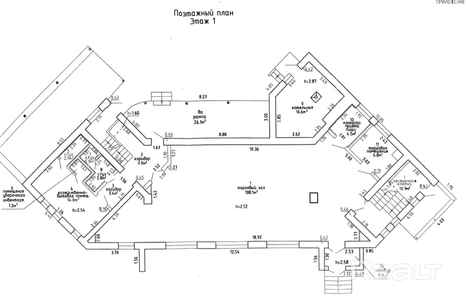Помещение с ремонтом, отапливаемое. Состоит из торгового зала 159,5 м2, хозяйственно-бытовых помещений, санузла.