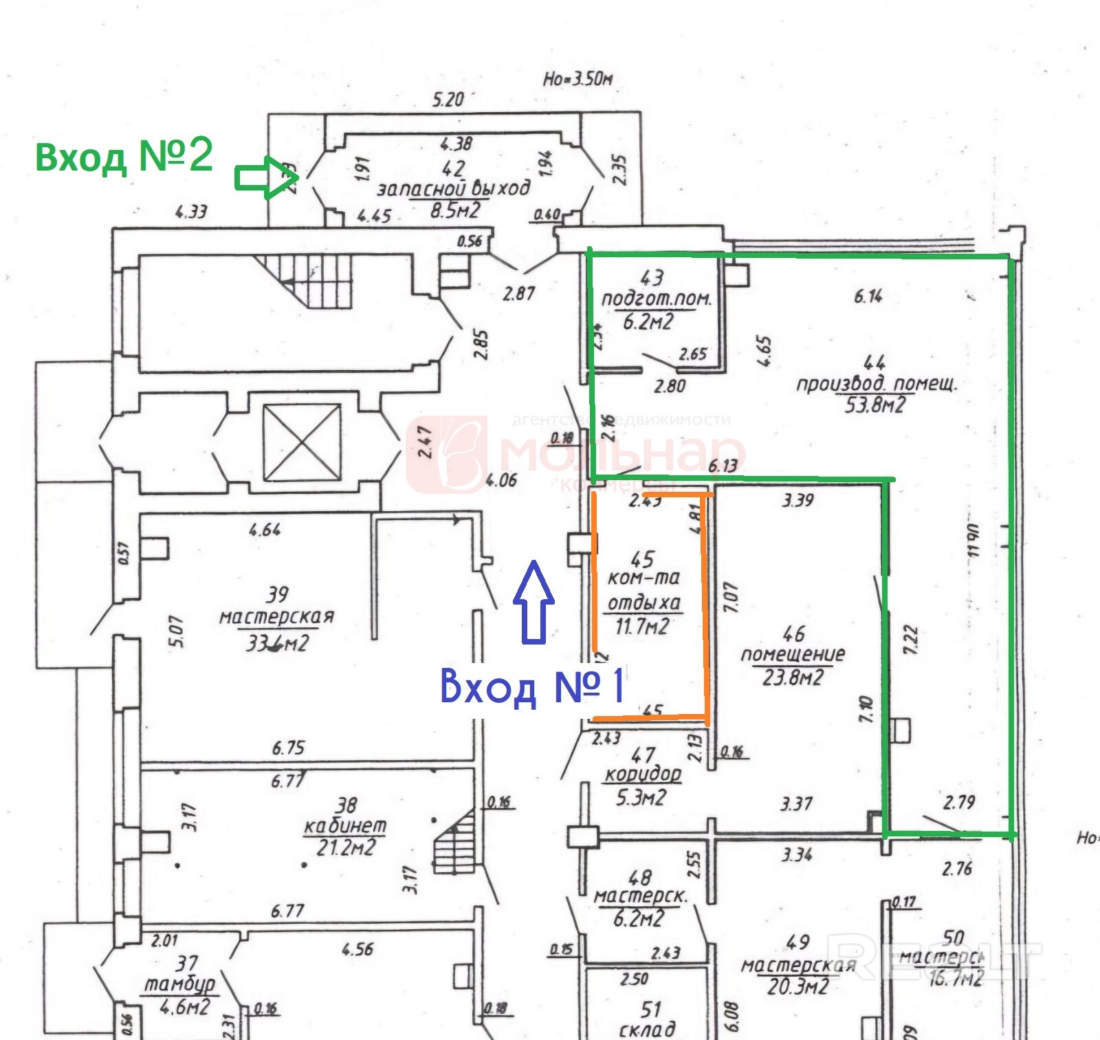 Возможна аренда дополнительно 11,7 м2 ( итого доступно 71,7 м2)
