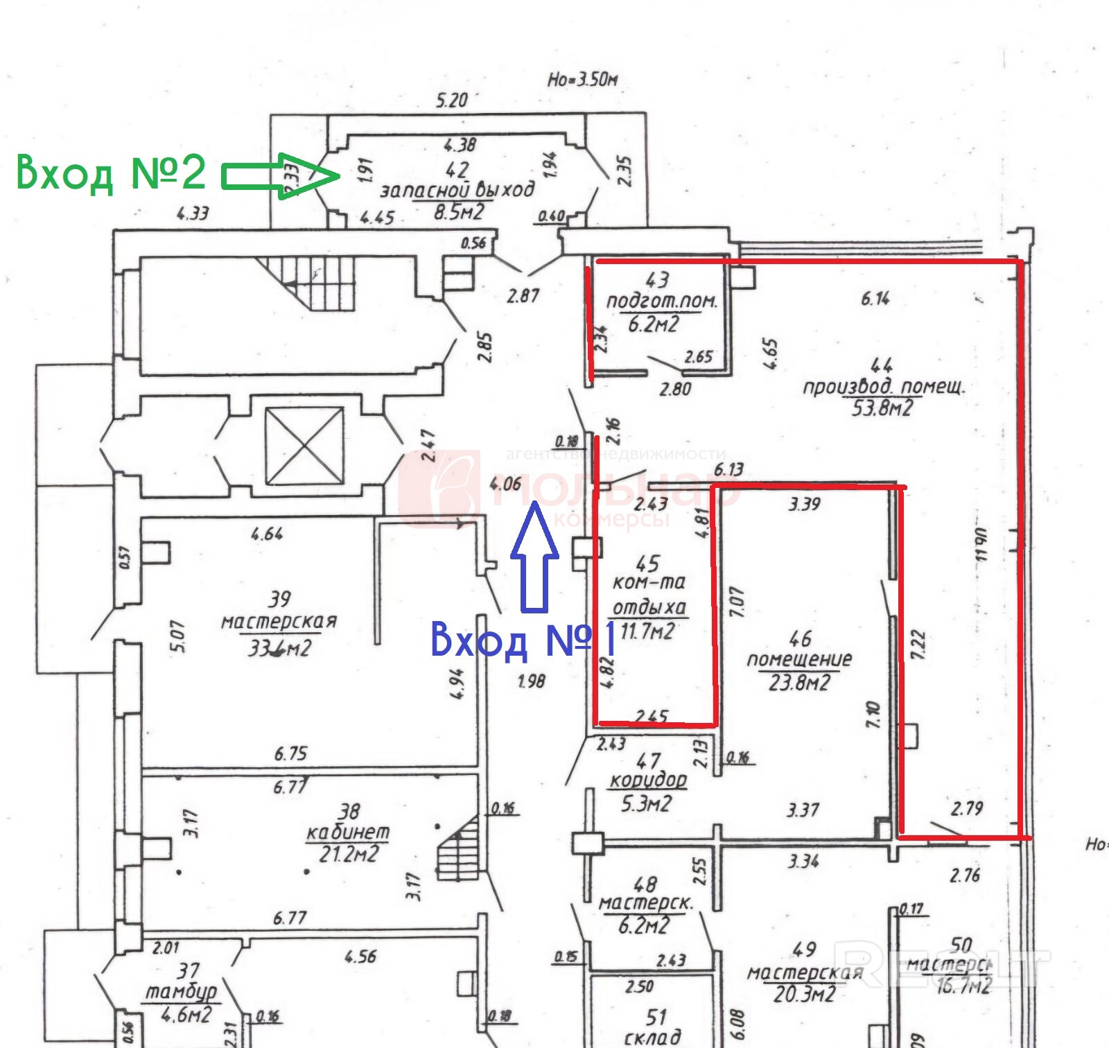Условия для аренды: 35 руб./м2 с НДС