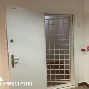1. Два входа в помещение: главный вход (застекленный, дополнительно закрывается металлической дверью) и запасной выход с лестницей и лифтом.