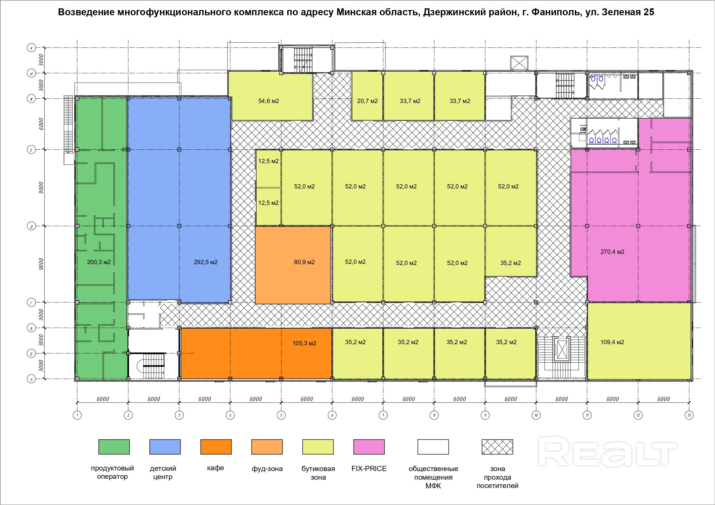 Многофункциональный комплекс расположится в новом жилом районе г. Фаниполь и станет ключимых торговым объектом инфраструктуры данного района.
