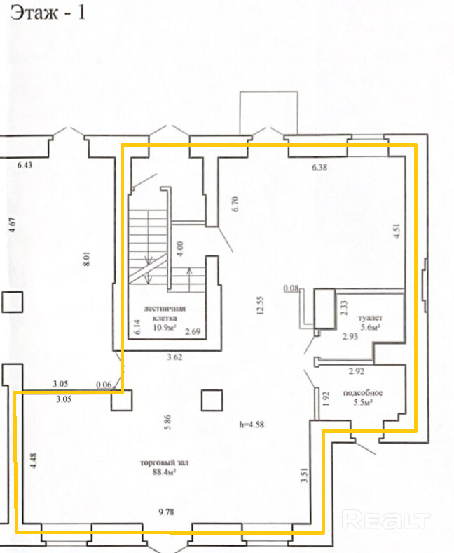 Коммерческое помещение общей площадью 189,2 м2 располагается на 1-м этаже жилого дома в центре Минска, напротив ЖД Вокзала, по адресу ул. Кирова, 2.
