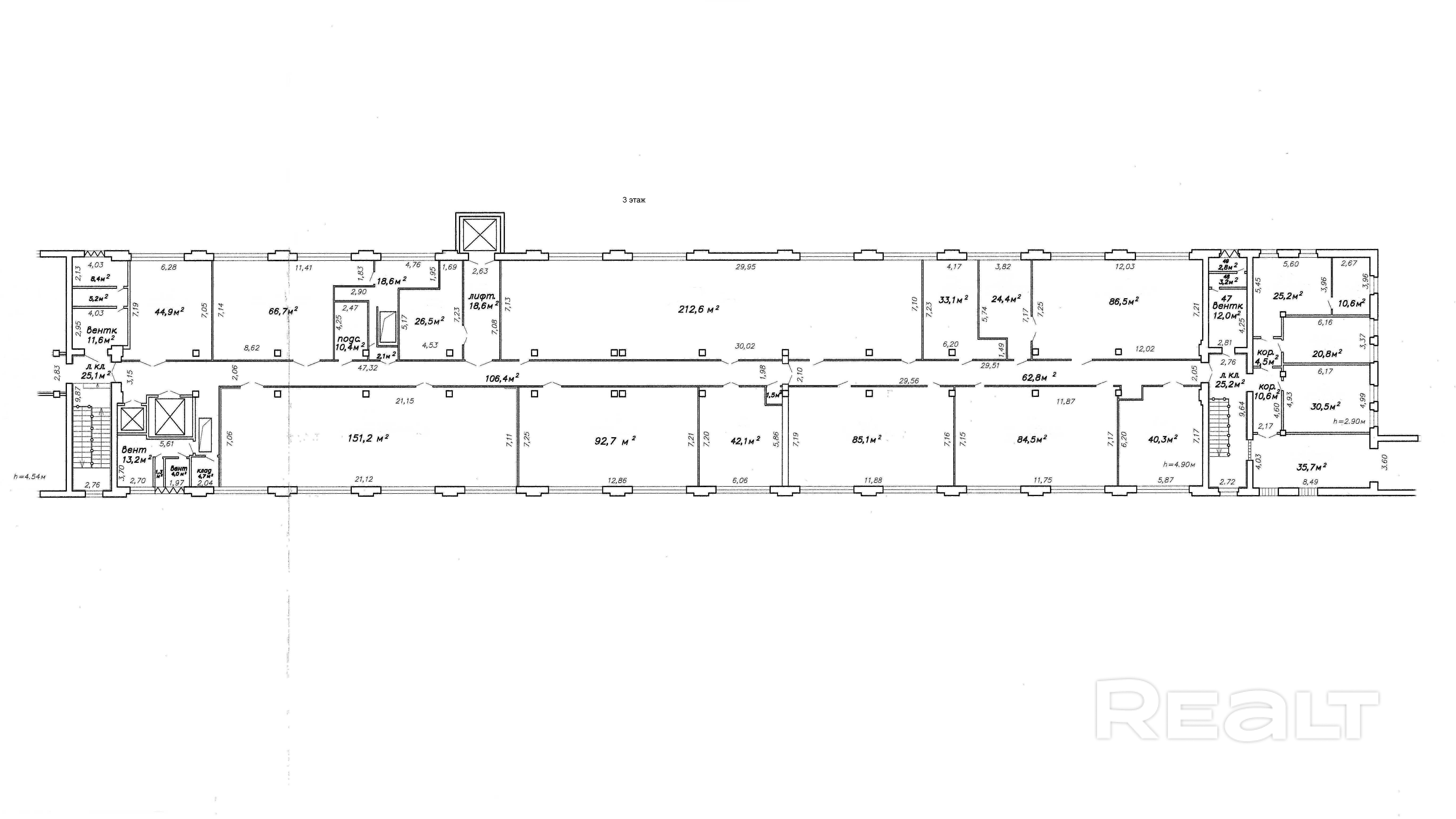 3 этаж – от 80 до 1700 кв.м.