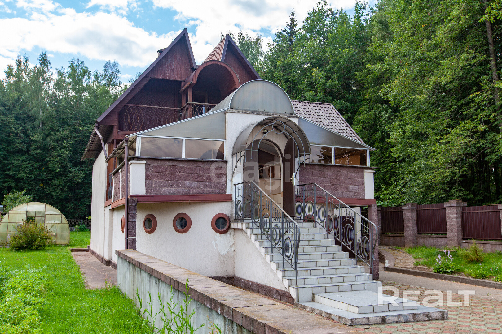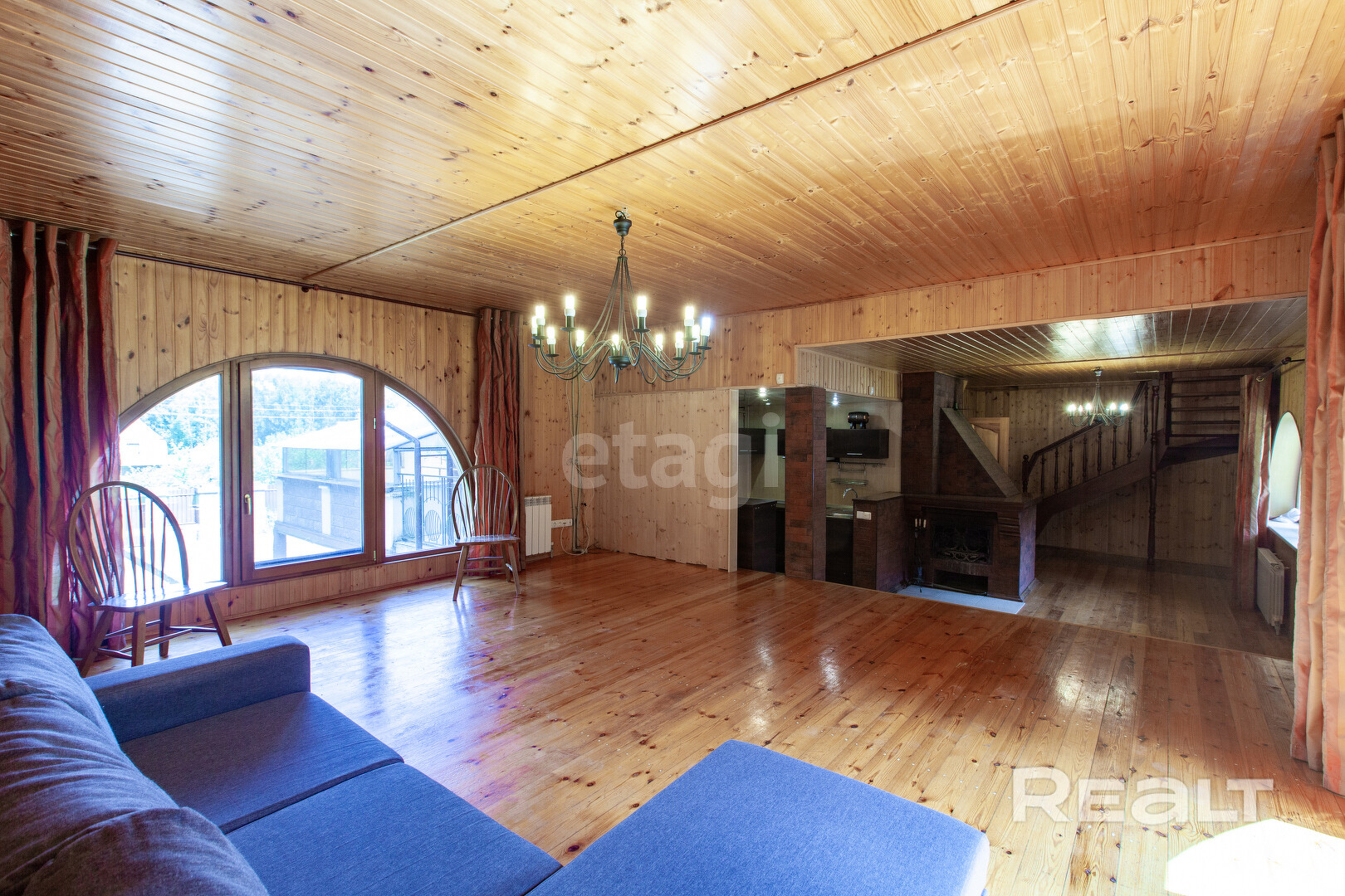 3-х этажный дом общей площадью 300 м.кв., В гостиной 51 м.кв. есть камин, стены обшиты вагонкой, из окон открывается прекрасный вид. Кухне 6.3 м.кв., оборудована кухонным гарнитуром, электроплита. На мансардном этаже имеются комнаты 18.6 м.кв. , 22.1 м.кв. и 23.1 м.кв. . Комнаты полностью обшиты вагонкой.