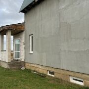 Стены - блок газосиликатный, наружная штукатурка, перекрытие по деревянным балкам, фундамент ленточный, кровля – металлочерепица, утепление кровли 15см по перекрытию.