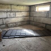 Подземная часть – бетонные блоки ФБС с гидроизоляцией, межэтажное перекрытие между подвальным помещением и первым этажом- железобетонное, между 1-ым этажом и мансардным – деревянное, стены – блочные, перегородки – кирпичные, блочные, кровля -металлочерепица, двери – металлические, роллет, окна – ПВХ. К участку подведено электричество, за домом – автономная канализация (два септика). Планируемое отопление электрическое, либо твёрдотопливное. Газ не предусмотрен. Вода планировалась под скважину.
