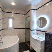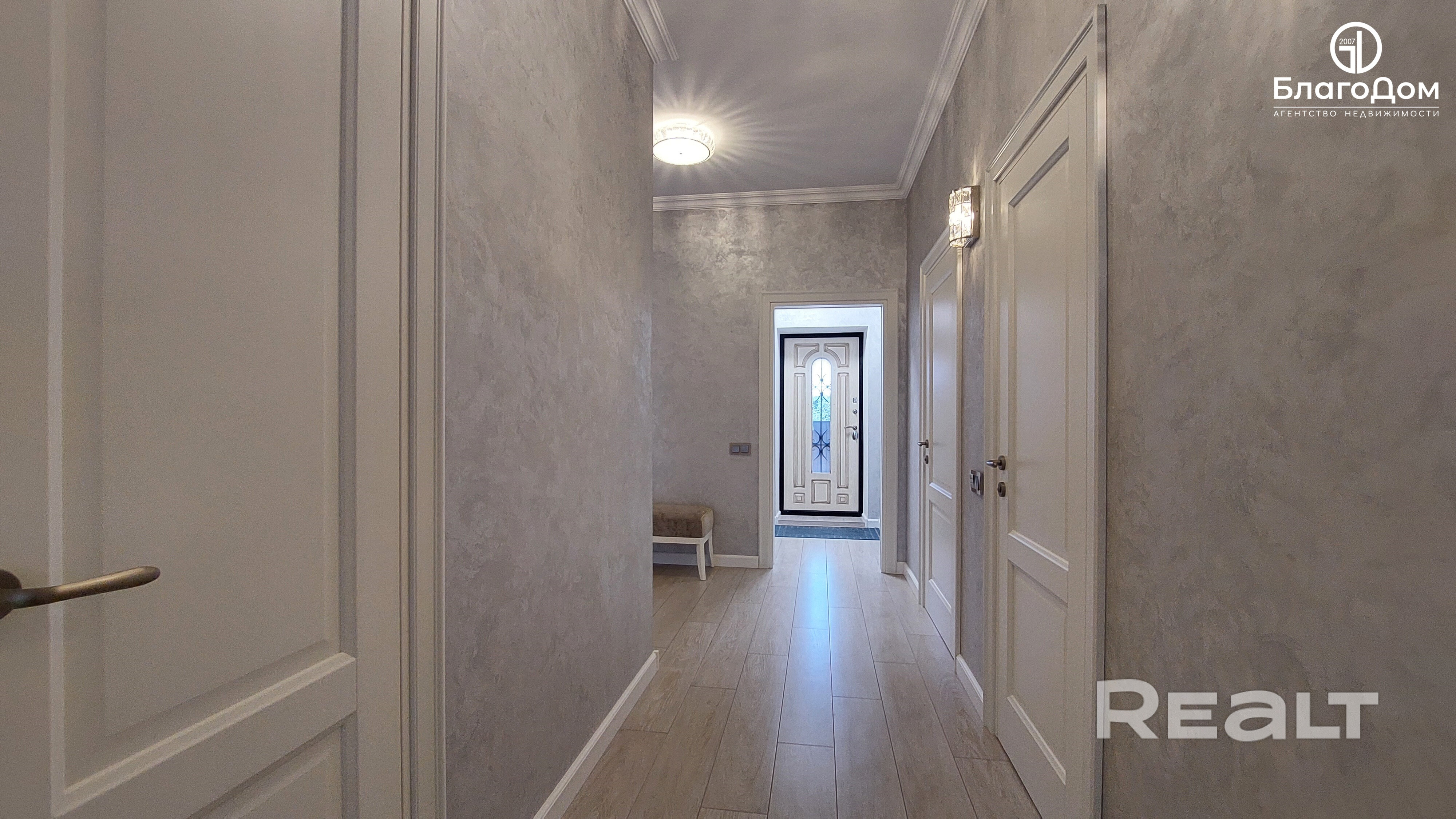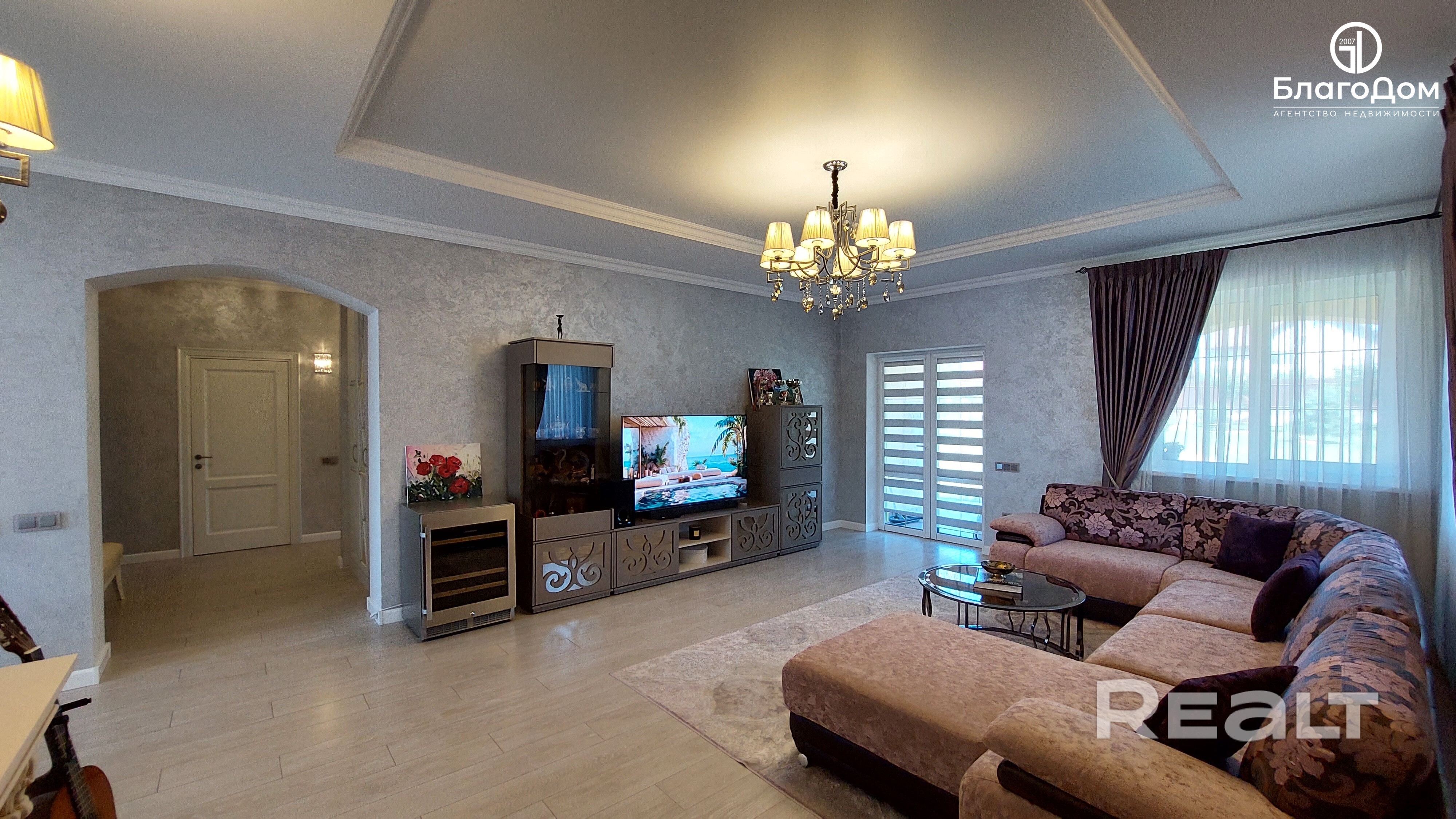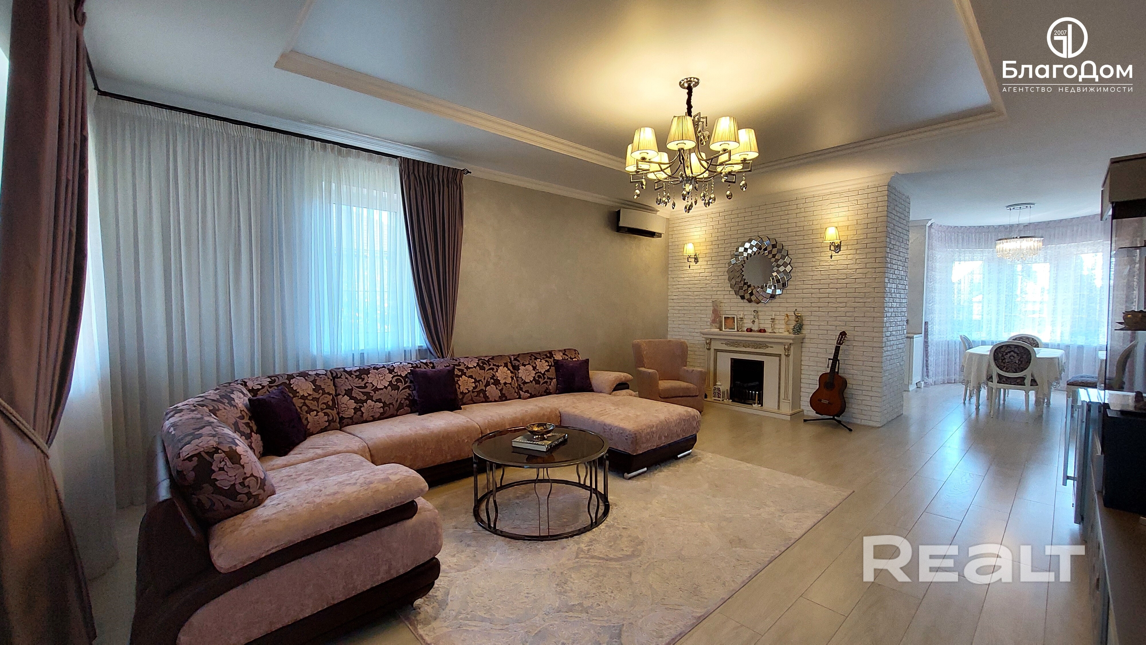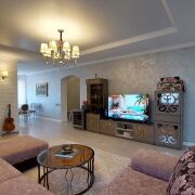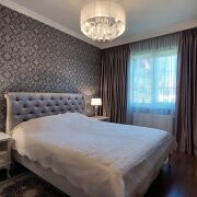 В доме четыре жилые комнаты: гостиная и три спальни, кухня-столовая, два сан/узла. Ремонт выполнен с использованием высококачественных материалов. Стены - венецианская штукатурка, пол - плитка, ламинат.