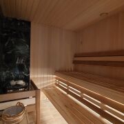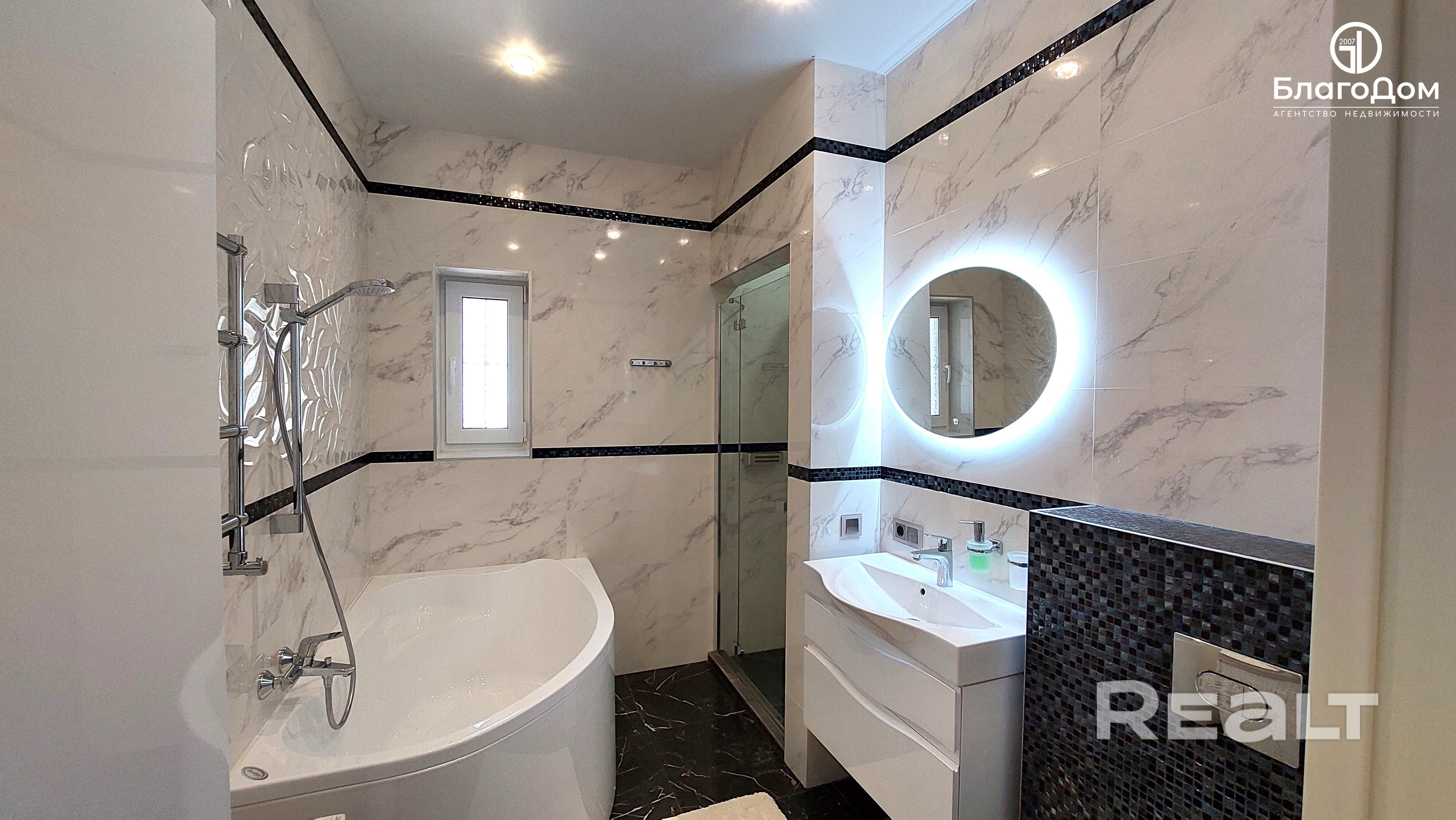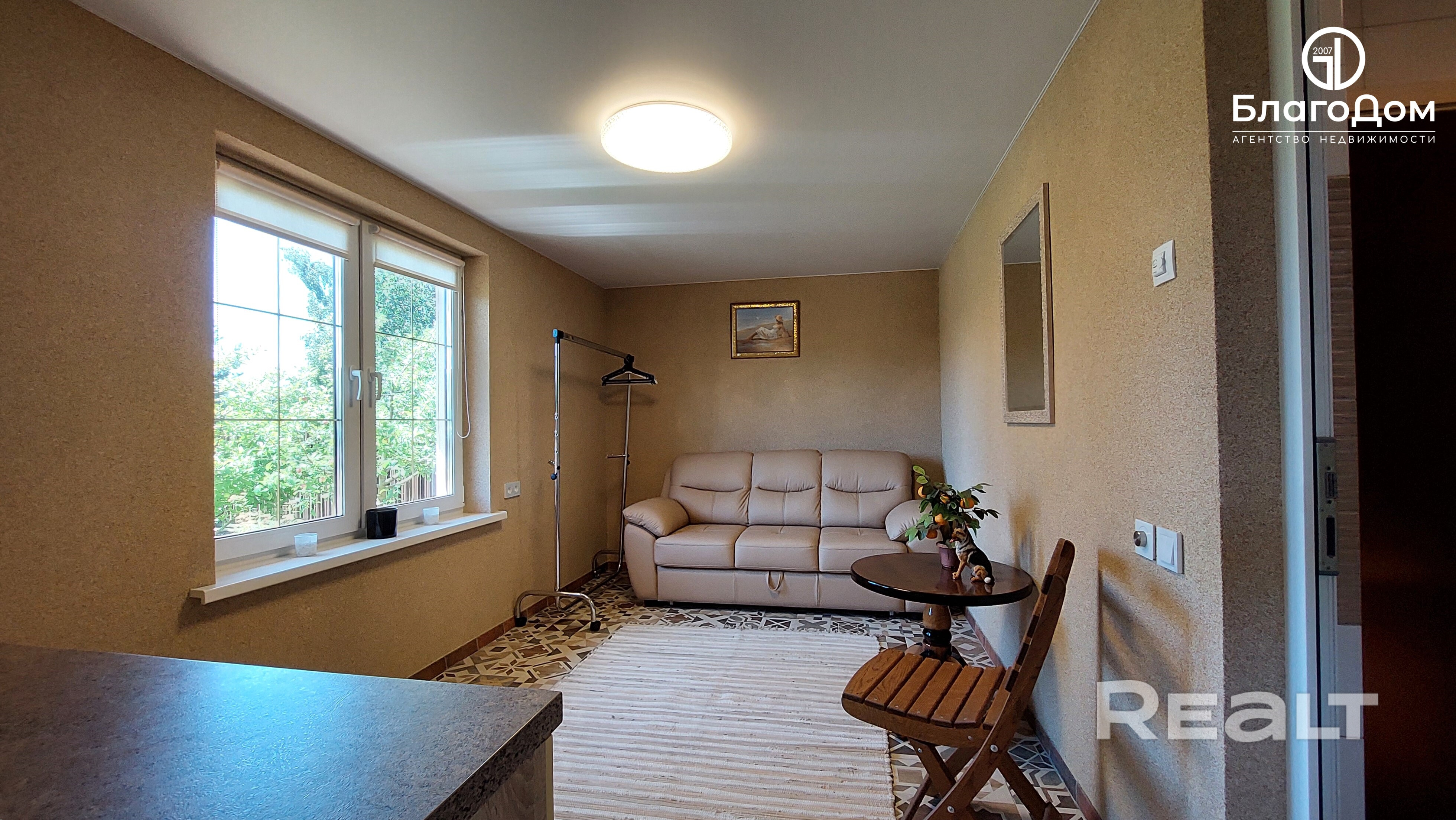 Дом одноуровневый, функциональная планировка, построен из современных материалов, с гаражом и уютной террасой. Утепление – «PAROC» 10 см. На земельном участке расположена площадка для релакса. Отдельно стоящий банный комплекс (комната отдыха, парная, душевая) с зоной барбекю.