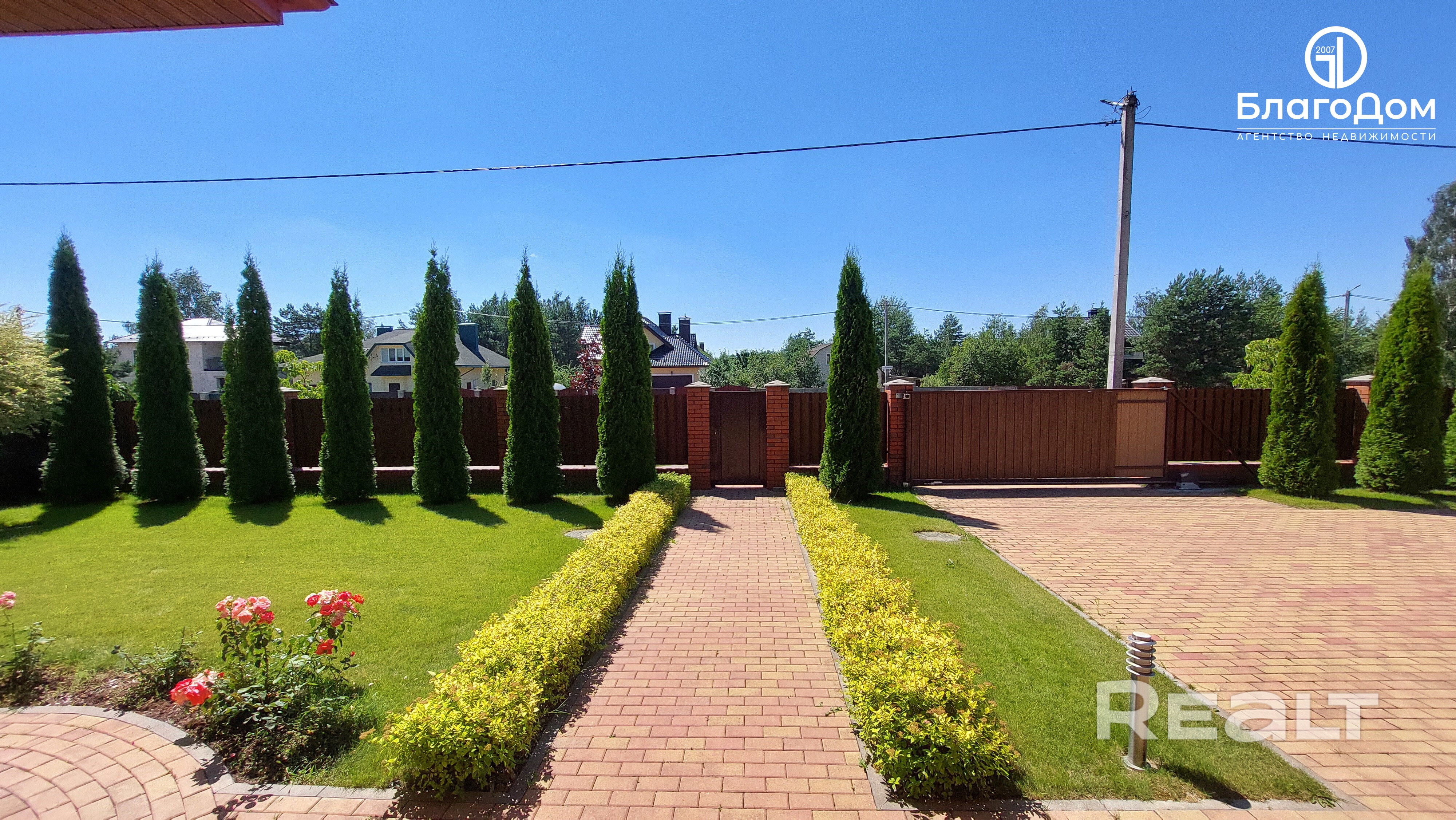 Внутридворовая территория предназначена для парковки нескольких автомобилей, теплый гараж, въездные - откотные ворота, система видеонаблюдения, контроль доступа, ограждение металлопрофиль, деревянная изгородь.