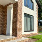 Двухэтажный дом построен по индивидуальному дизайн-проекту из газосиликатных блоков, утеплён, фасад задекорирован штукатуркой "короед" и декоративным камнем "феодал". Такой дом обладает великолепными теплоизоляционными характеристиками и хорошей звукоизоляцией.