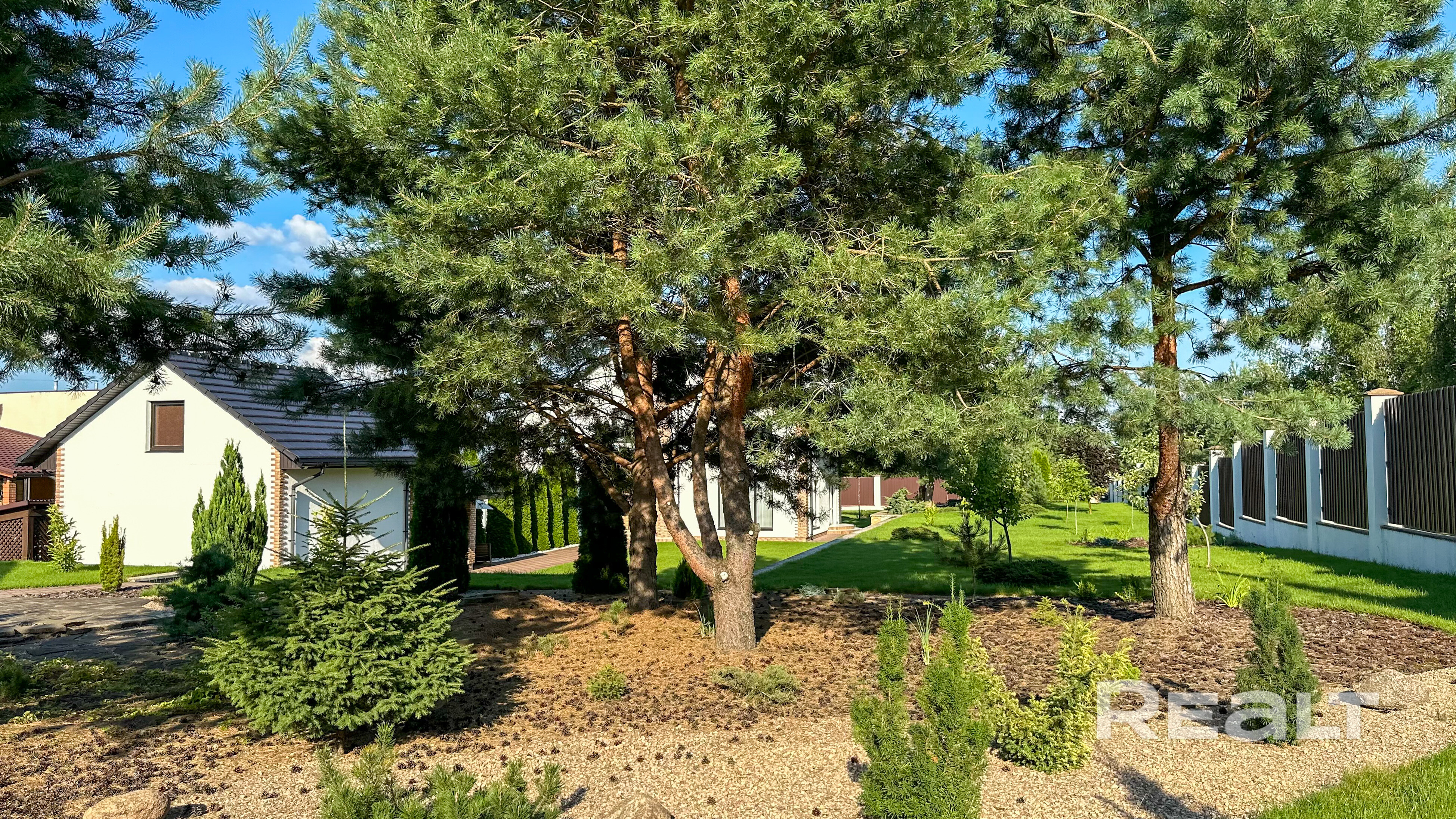 Благоустроенная территория, продуманный ландшафтный дизайн: ухоженный газон с автоматическим поливом фирмы Torro ( США), декоративные и плодовые деревья, уютный уголок под кронами сосен, где прекрасно растет голубика с лесной земляникой, цветы и кустарники, которые будут радовать вас своими яркими красками.