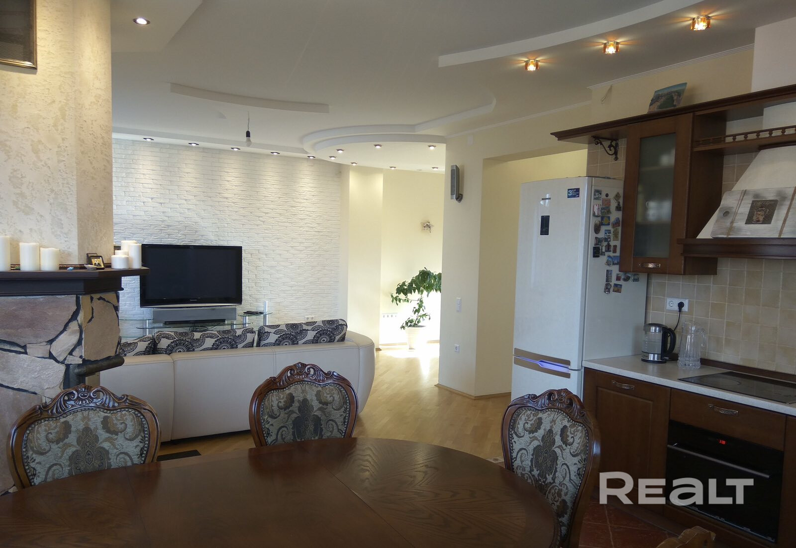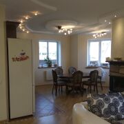 На первом этаже расположена кухня 16,5 кв. метров и просторная гостиная 20 кв. метров.