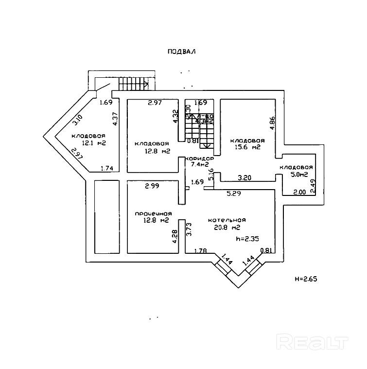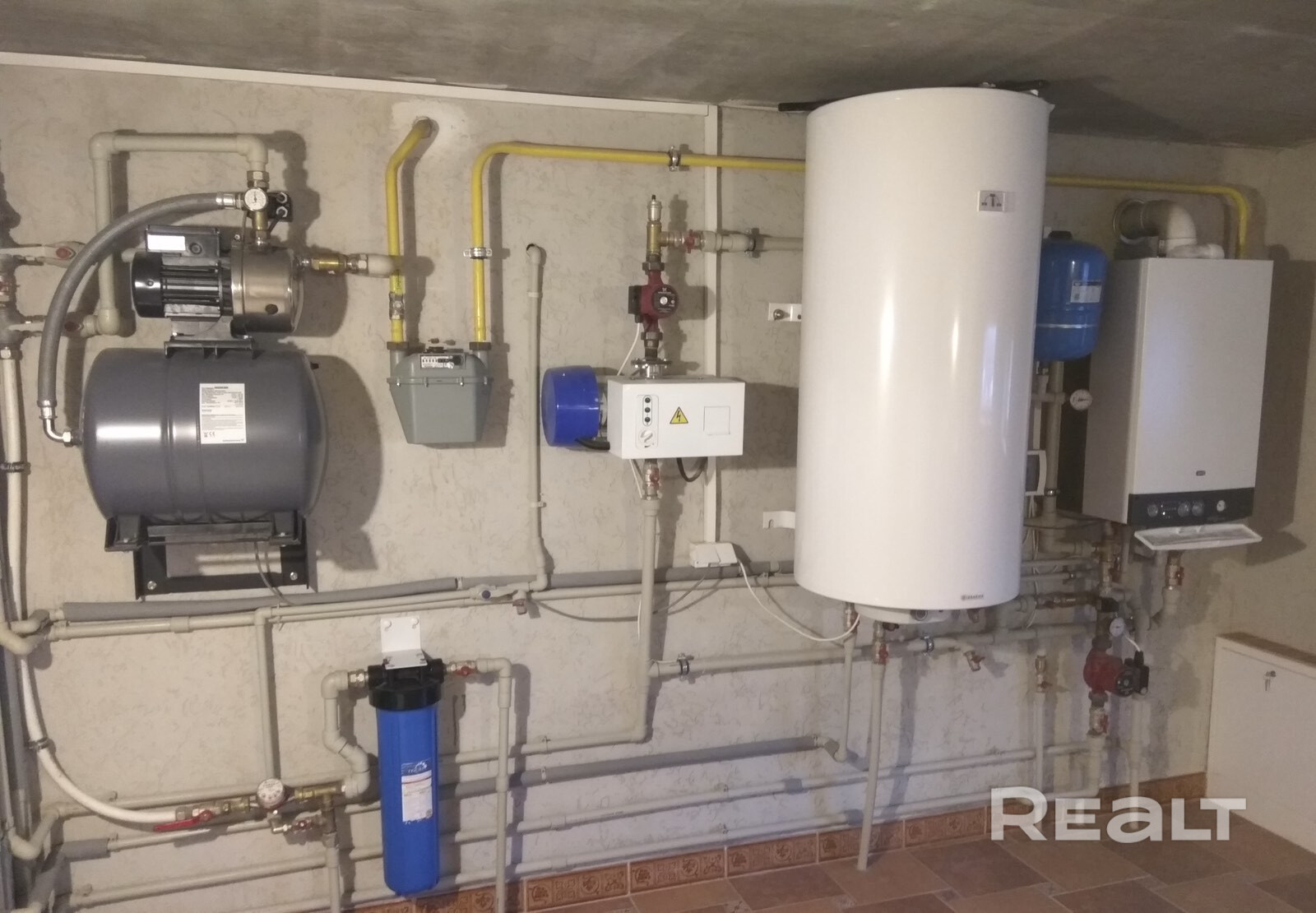 Также имеется подвальный этаж, где расположены 4 кладовых, прачечная и котельная. Здесь же установлены бойлер, газовый котел и фильтр очистки воды.