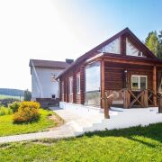 Дом из бруса площадью 140 м.кв. с жилой мансардой расположен на южном склоне, на опушке леса.