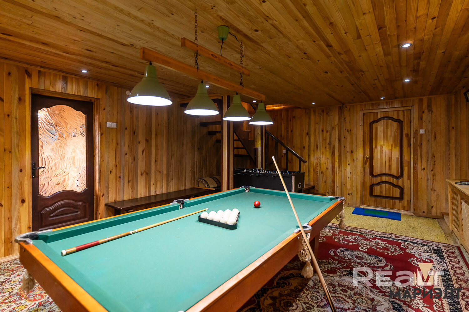 В одном из домов предусмотрен банкетный зал, баня с бассейном, бильярдная комната, крытая беседка, а также зона барбекю. В доме много изолированных комнат. Отопление – электрокотел (льготный тариф), канализация местная. Дома продаются с мебелью.
