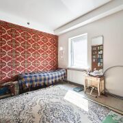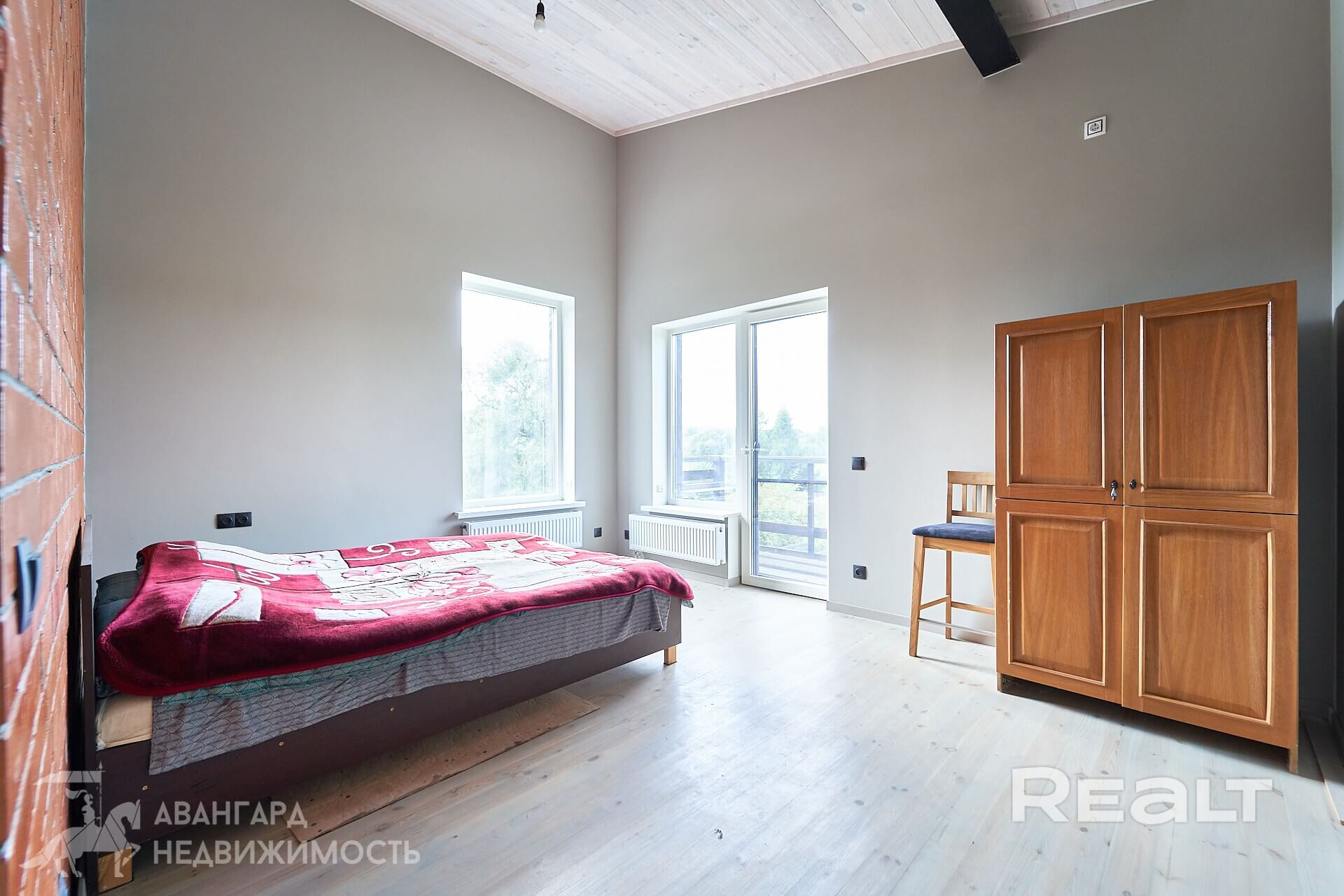 1 этаж: входная зона (прихожая) 2,1 м2; оборудованная кухня-гостиная 25,6 м2; жилая комната 13,7 м2; совмещенный санузел 6 м2; кладовая 7 м2. Высота потолков 2,8 м. 2 этаж: входная зона (прихожая) 4,6 м2; 3 жилых комнаты 34 м2; рабочий кабинет 8,1 м2; кухня-гостиная 46 м2, гардеробная (4,8 м2), постирочная (5,9 м2). Большая спальня окнами выходит на большой балкон с видом на луг. В спальне отдельный с/у. Высота потолков от 4.2 до 2,5 м.