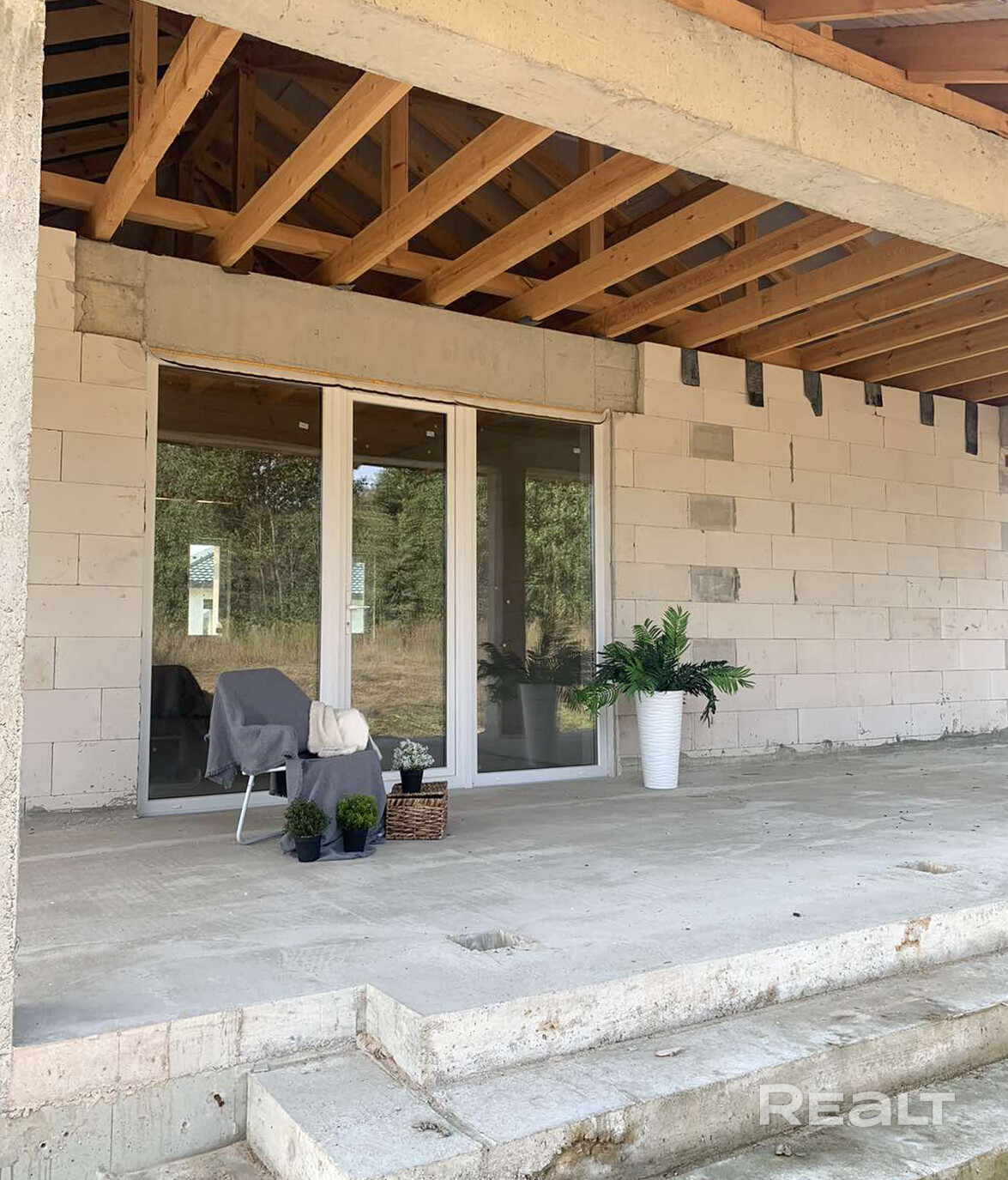 Современная версия традиционного одноуровневого дома с функциональным расположением комнат и большой террасой в аг. Гостиловичи. Минская обл., Логойский р-н. 37 км от МКАД.
