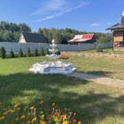 Учасок площадью 21 сотка, ровный, огорожен металлосайдингом на бетонной отмостке. Посажены плодовые деревья, туи. Есть теплица. На участке прекрасный фонтан, есть каркасный бассейн.