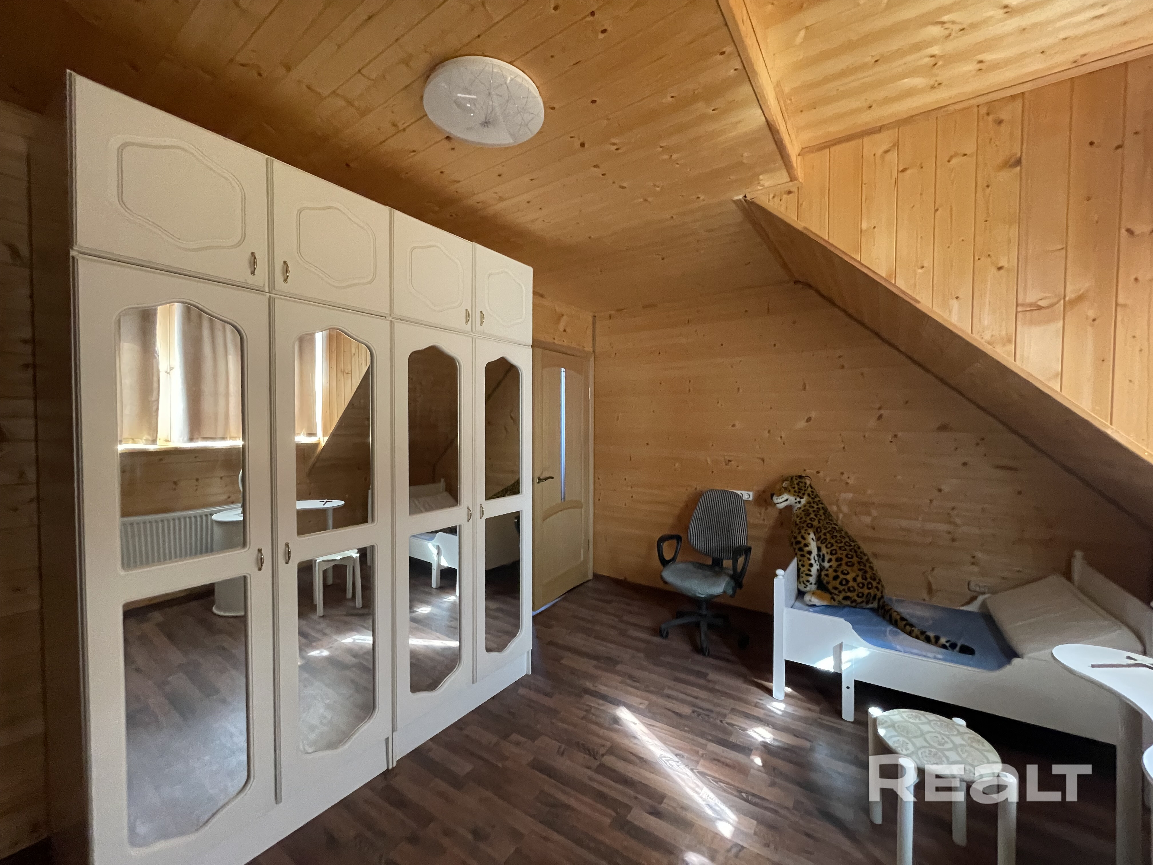 В доме есть 5 жилых комнат, два санузла, бильярдная, кладовка, Высота потолков на первом этаже 2.76м, на втором 2.5 м. Просторная терраса с камином и умывальником.