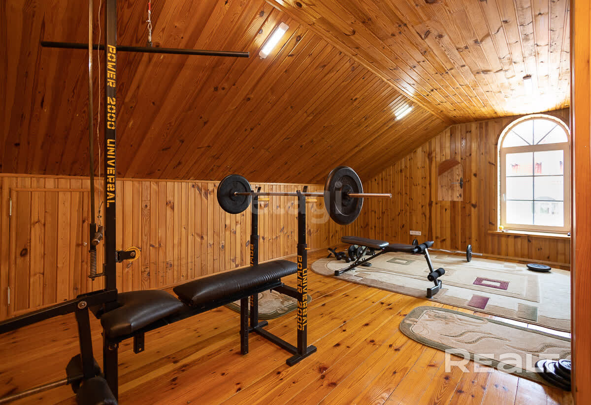 - Мансардный этаж: 47,6 м2, оборудованный спортивным залом с мансардными окнами.