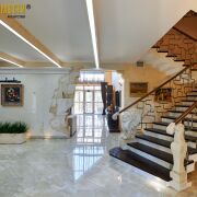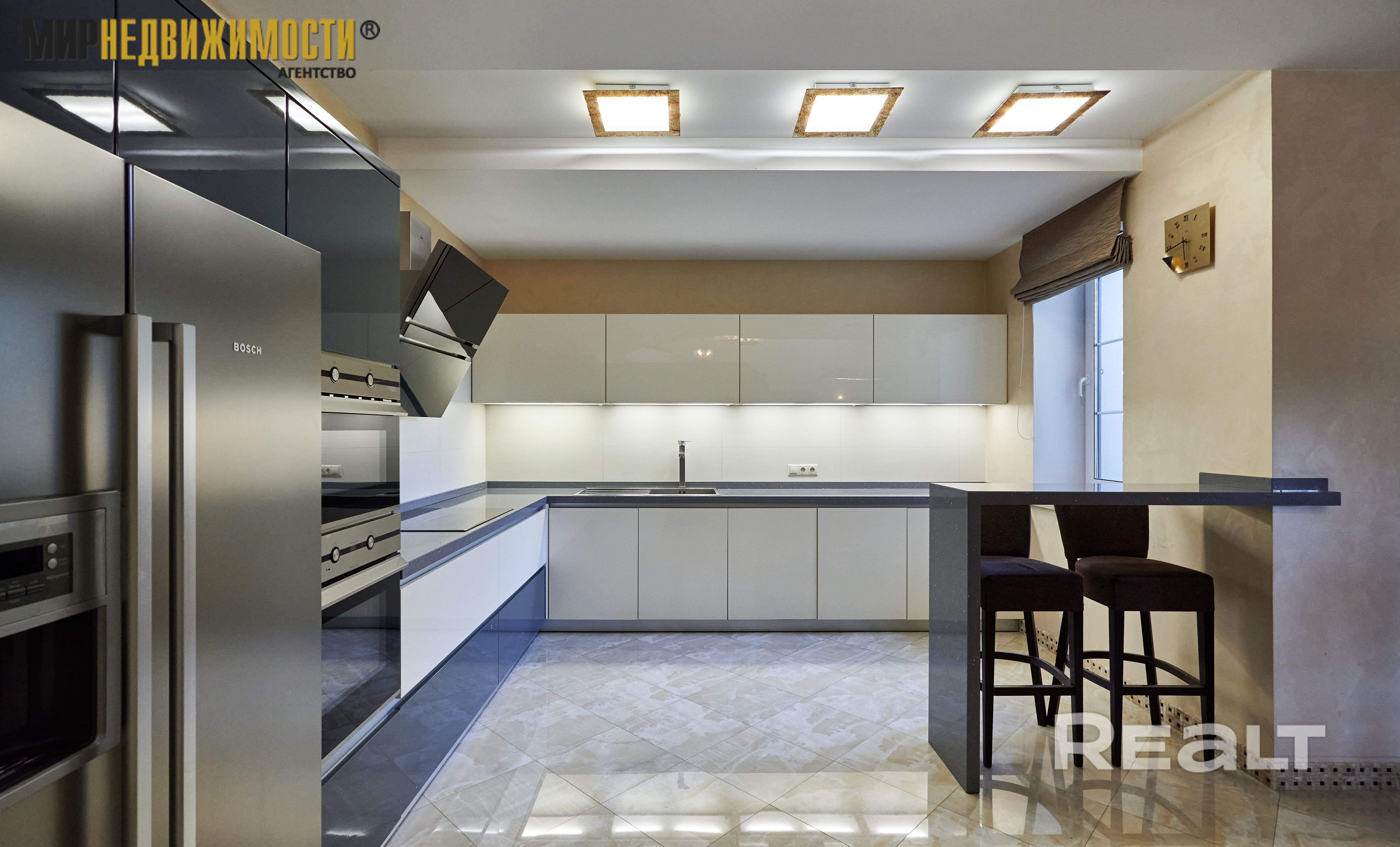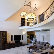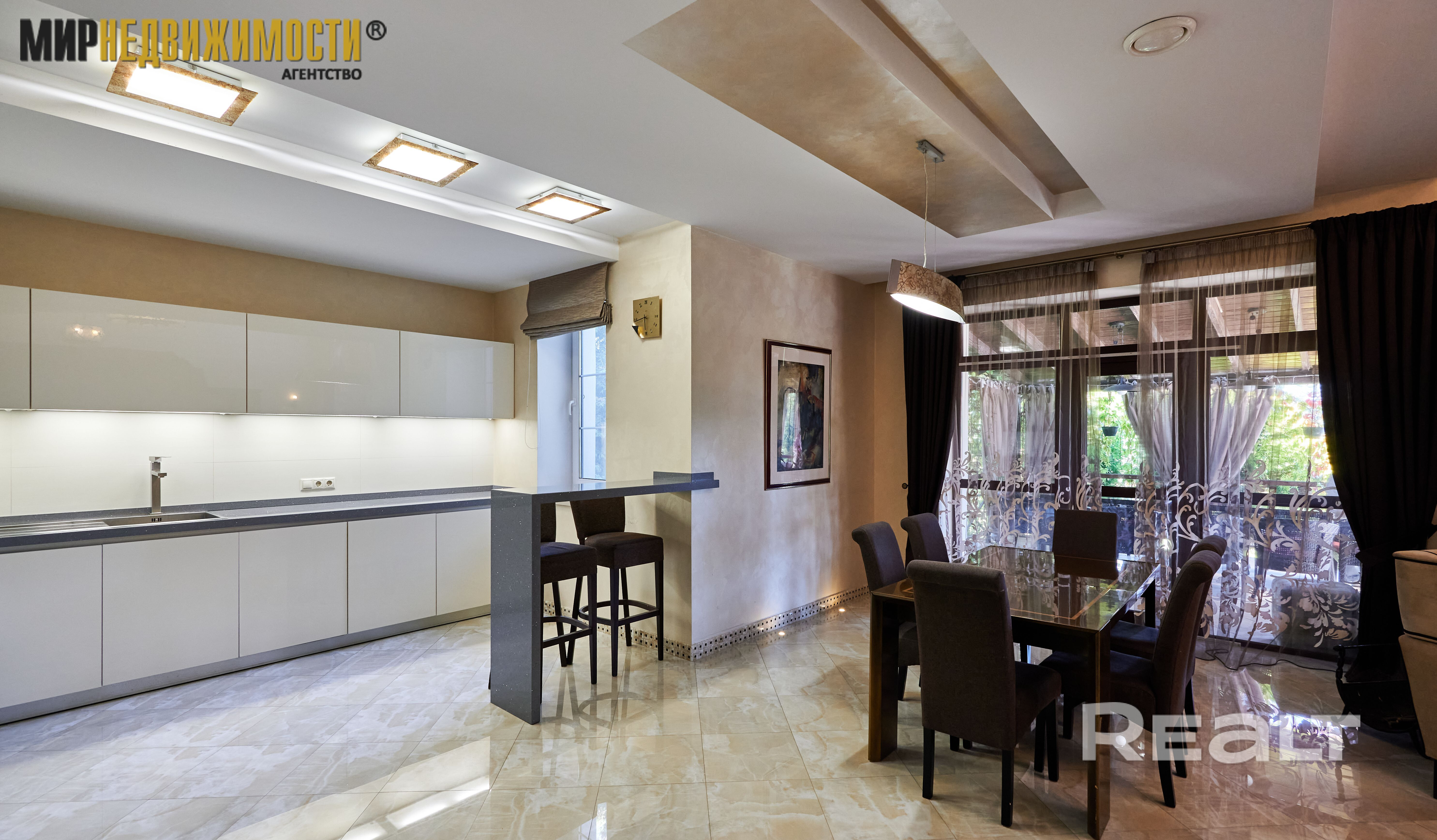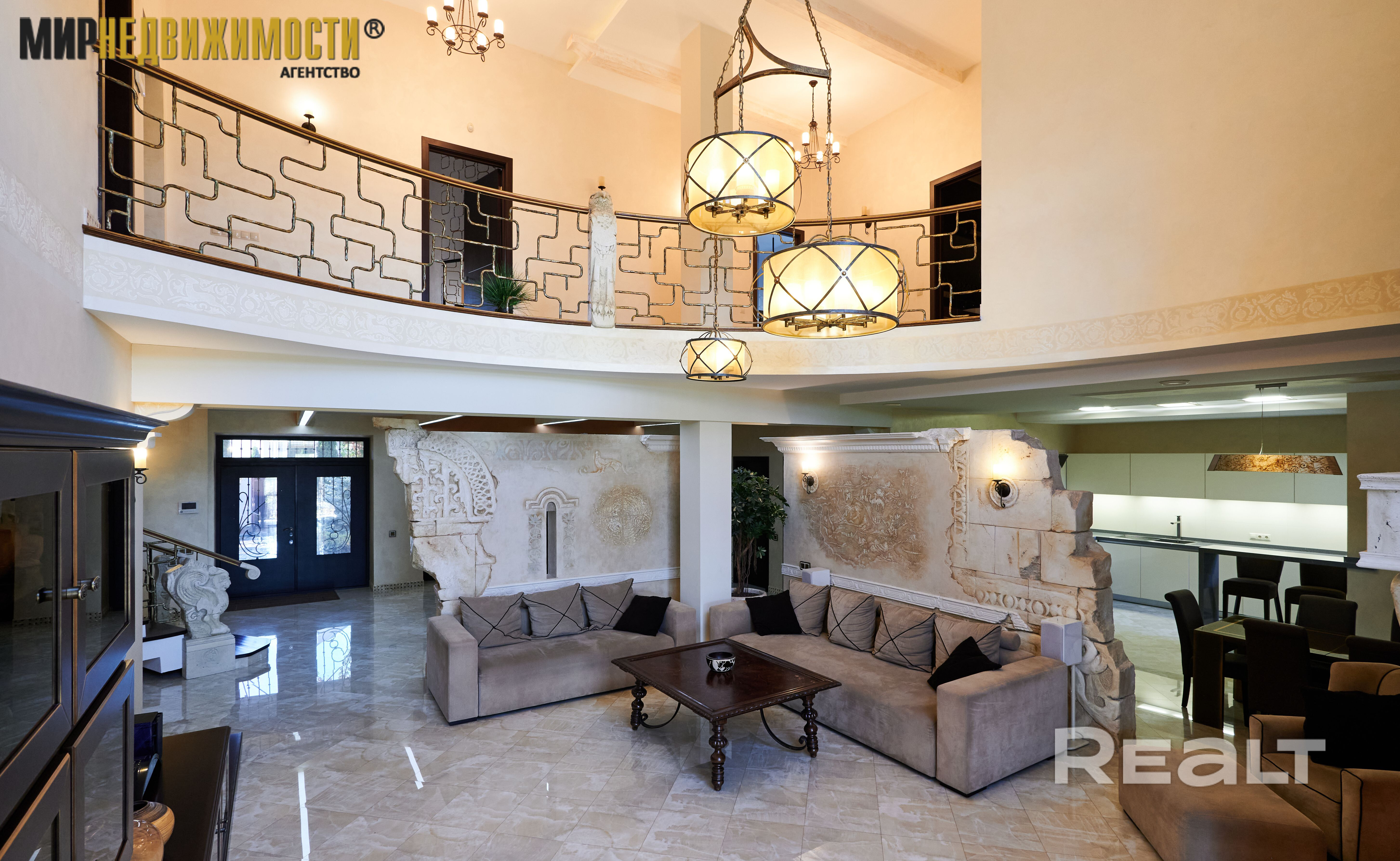- кухня с большой обеденной зонной 30,1 кв.м., гостиная 42,4 кв.м. с выходом на террасу. В гостиной второй свет и большой камин открытого типа. Терраса с навесом, открытая, большая печь для барбекю;