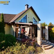Конструкция дома: фундамент – бетон, стены - газосиликатные блоки, в подвале бетонные блоки; фасад утеплен, покрыт декоративной штукатуркой; железобетонные перекрытия; кровля – мягкая черепица Катепал; окна – ПВХ.