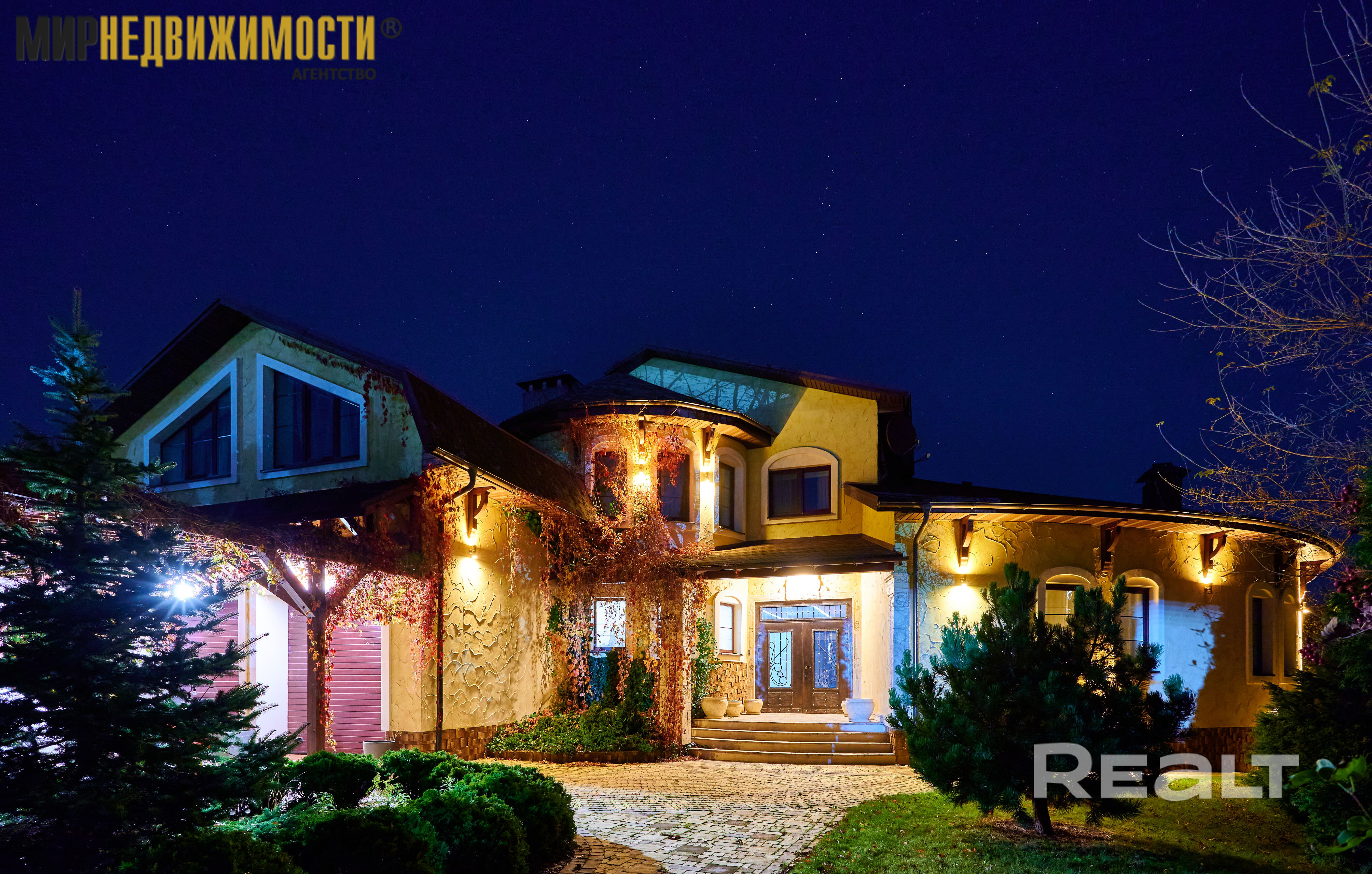 Территория: участок 0,2222 га огорожен высоким деревянным забором. Ландшафтный дизайн. Автоматические въездные ворота. На участке высажены туи, плодовые и хвойные деревья и другие многолетние и декоративные растения. Красивая вечерняя подсветка дома.