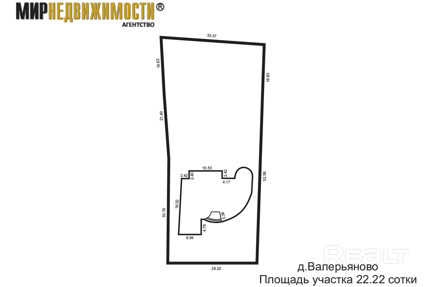 - Площадь участка