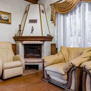 - просторная, светлая гостиная 37,9 м2 c натуральным камином на дровах, с бильярдом;