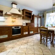 Кухня выполнена в итальянском стиле с фасадом из массива березы, оснащенная техникой Samsung и Mille, станет любимым местом для приготовления семейных блюд.