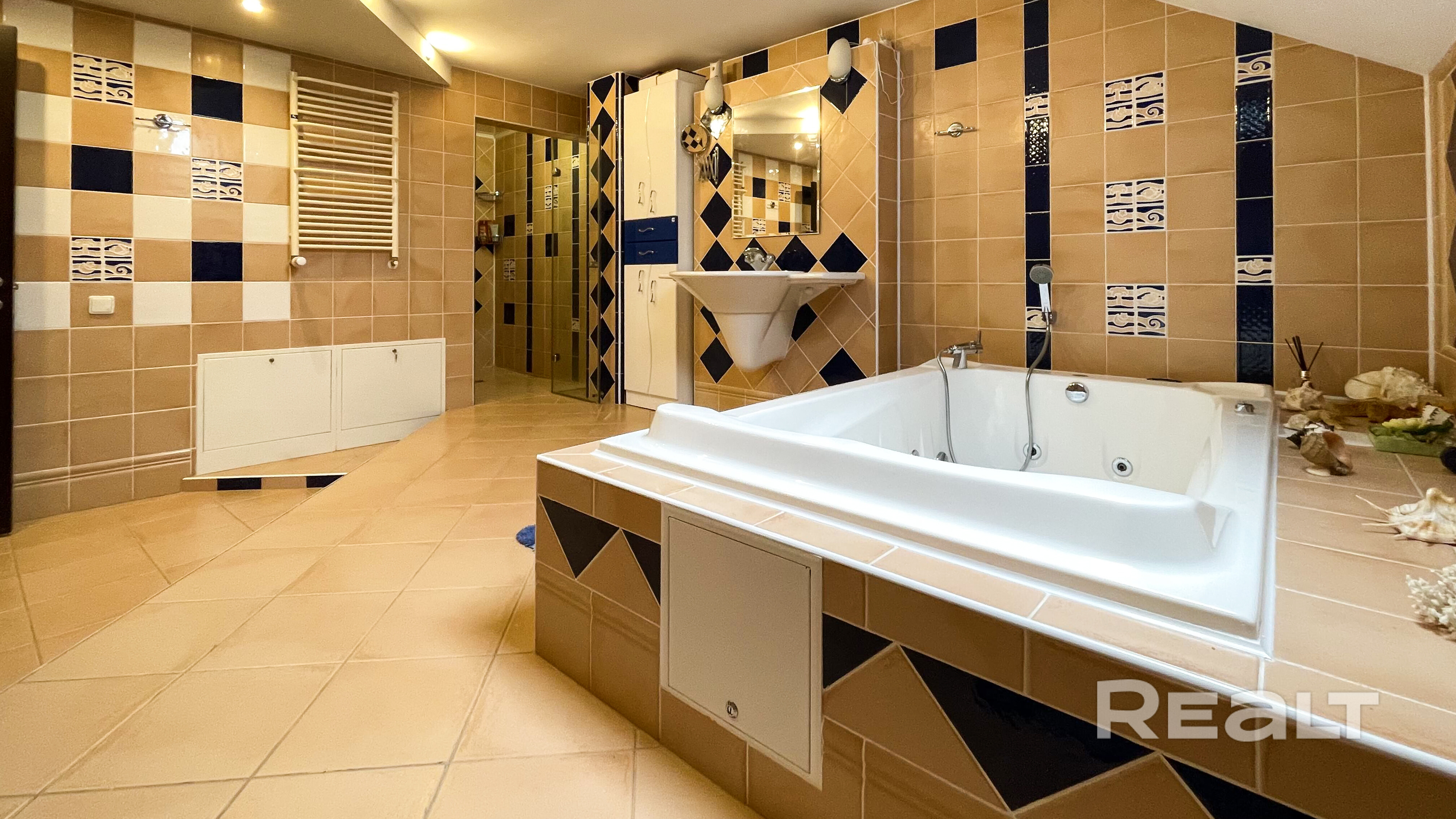 В санузле 3 этажа 2-х местная джакузи, производитель Pool spa. Сантехника 1-2 этажи Roca, на 3 испанская.