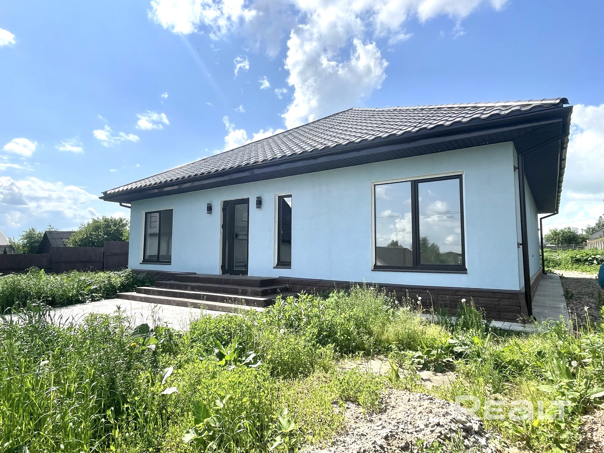 Во всём доме установлены 2-х камерные стеклопакеты ПВХ. Из гостиной можно попасть в 3-и спальни. Большие и просторные комнаты 13, 19, 19 м.кв., расположены вокруг гостиной. Все спальни светлые и комфортные с панорамными окнами в пол. Во всех комнатах установлены натяжные потолки, смонтированы встроенные карнизы для штор, и потолочные светильники. Из кухни есть выход на красивую, комфортную террасу, которая расположена на обратной стороне дома.