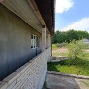 Фундамент – ФБС, перекрытия – плита, наружные стены – газосиликатный блок 400 с утепление мин. ватой, внутренние стены – кирпич, окна ПВХ, кровля битумный шифер. Дом оштукатурен по периметру.
