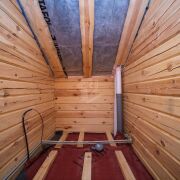 Отопление - предусмотрено несколько сценариев. Твердотопливный котел (установлен в отдельно стоящей котельной), электрокотел с возможностью дистанционного управления. Красивая печь с камином и встроенной духовкой. На первом этаже под керамогранитом водяной теплый пол с регулируемыми гребенками и зонированием. Теплые полы выполнены цельными трубами из сшитого полиэтилена на утеплителе толщиной 150 мм из эструдированного полистирола с отражающим слоем. На обоих этажах установлены радиаторы.