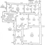 На первом этаже две жилые комнаты площадью 30,4 кв.м. и 13.0 кв.м. с выходом на лоджию. Кухня 16,8 кв.м. Прихожая 19,6 кв.м., два коридора 7,5 кв.м и 2.4кв.м. Две террасы-одна парадная, вторая на внутренний двор. Вход на лестницу на второй этаж и вход в подвальное помещение с кладовой и гаражом подземным. Совмещённый санузел площадью 7,2 кв.м.