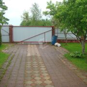 У дома есть два входа, два гаража на две машины каждый. Входная дверь и ворота металлические.