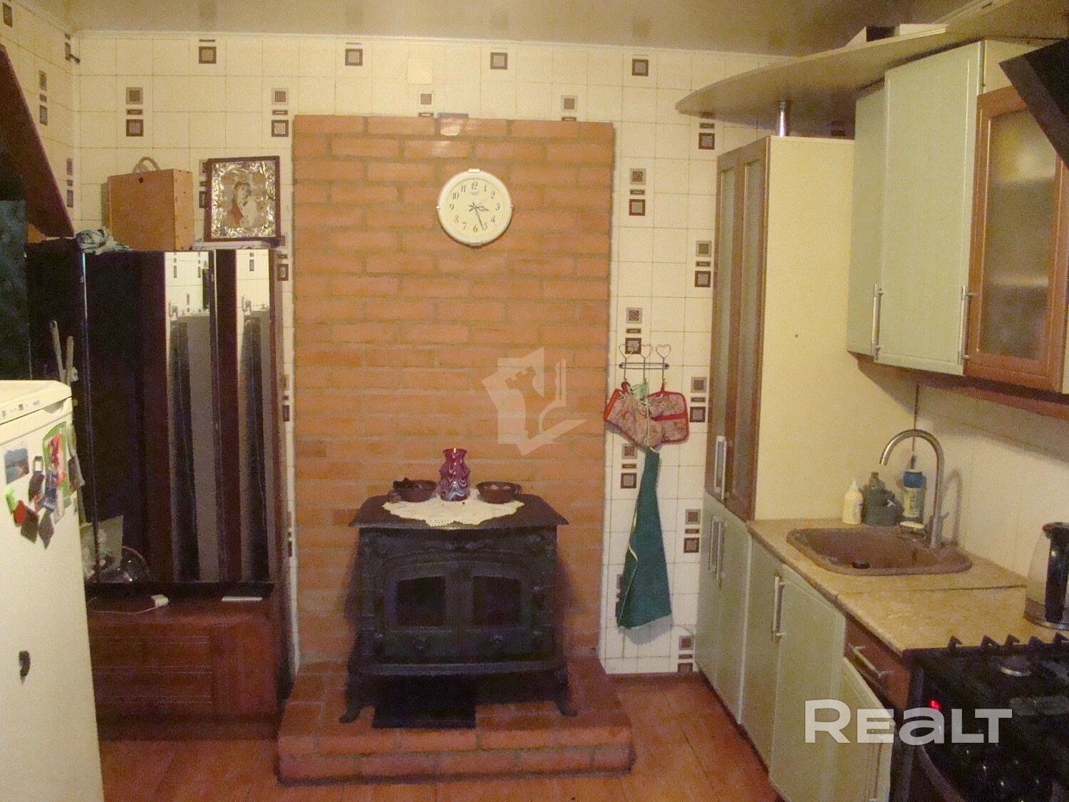 Отопление в доме выполнено из алюминиевых радиаторов. Также есть чугунный камин очень эффективный, со стеклянными дверками, где можно наблюдать за горением.