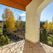 - На 2-ом этаже располагаются: спальни с King-size кроватями, рабочий кабинет с мебелью из дерева и кожаным диваном, 2 санузла, один из них с ванной, душевой кабиной и биде, гардеробные для удобного хранения одежды и обуви. Из жилой комнаты есть выход на балкон, откуда открывается красивый вид на зеленую зону, где Вы сможете наблюдать за красивыми закатами.