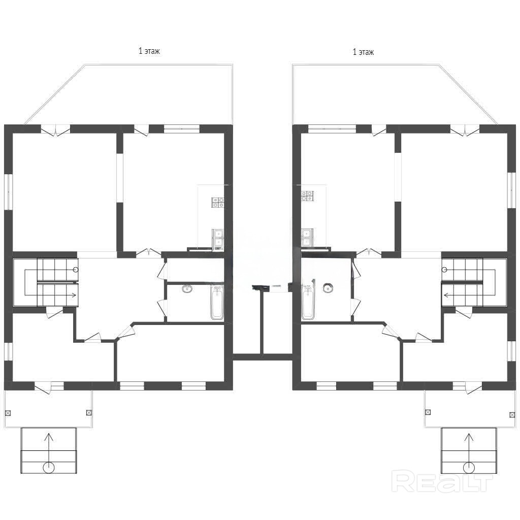 · Дом разделён на две равные по площади квартиры: