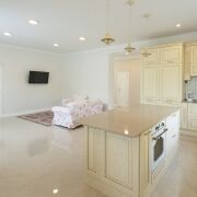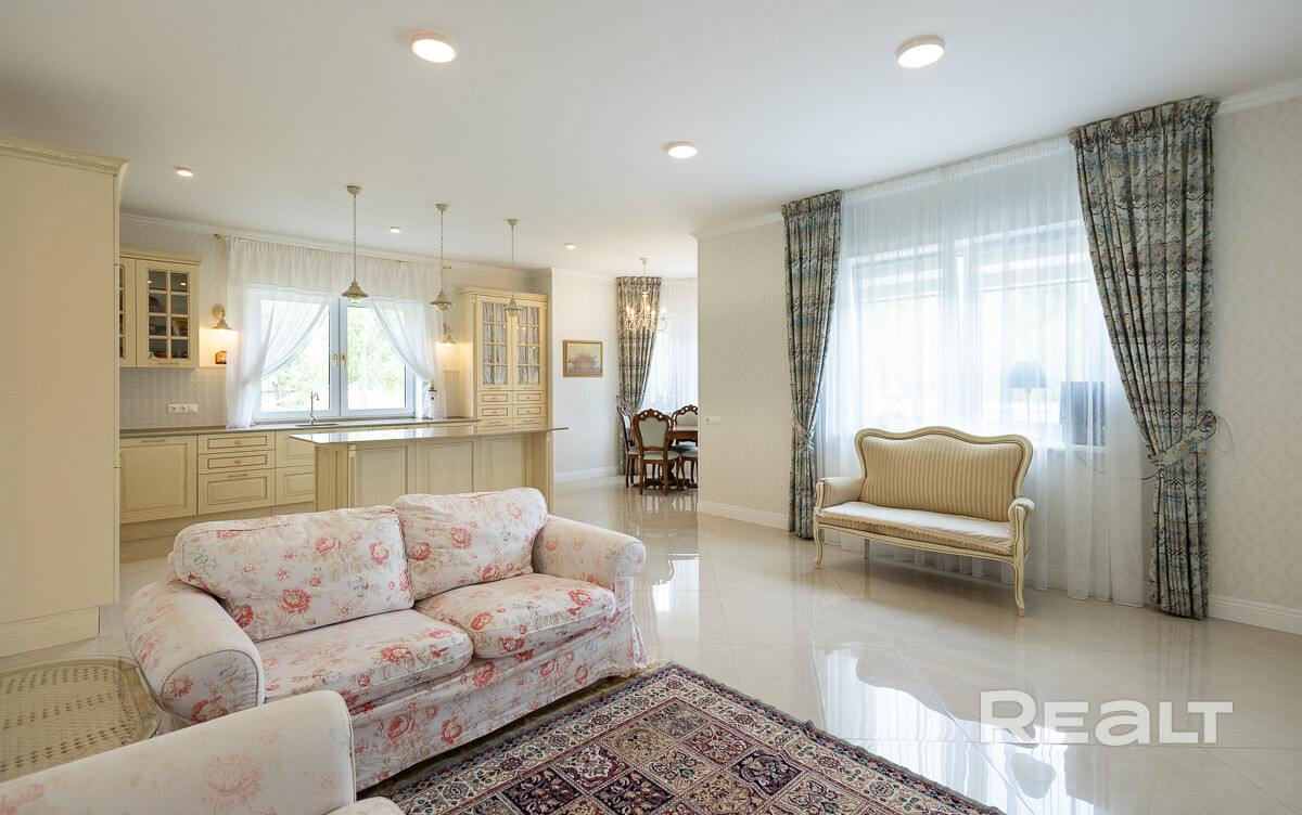 · Большая кухня-гостиная с большими окнами, встроенной бытовой техникой