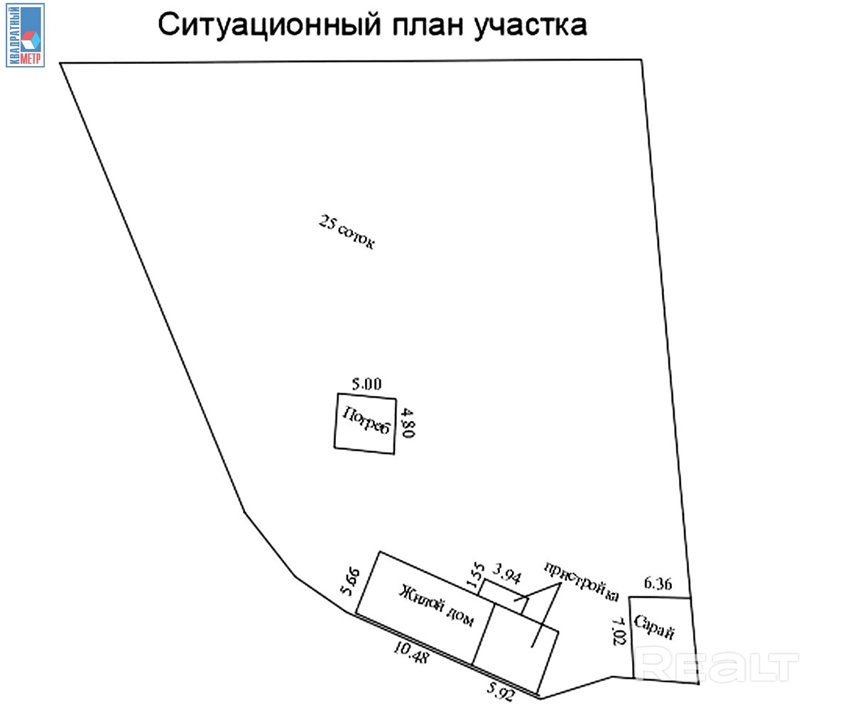 Участок 25 соток огорожен, на участке хозпостройки, плодовые деревья (яблони, груши), молодые хвойные деревья.