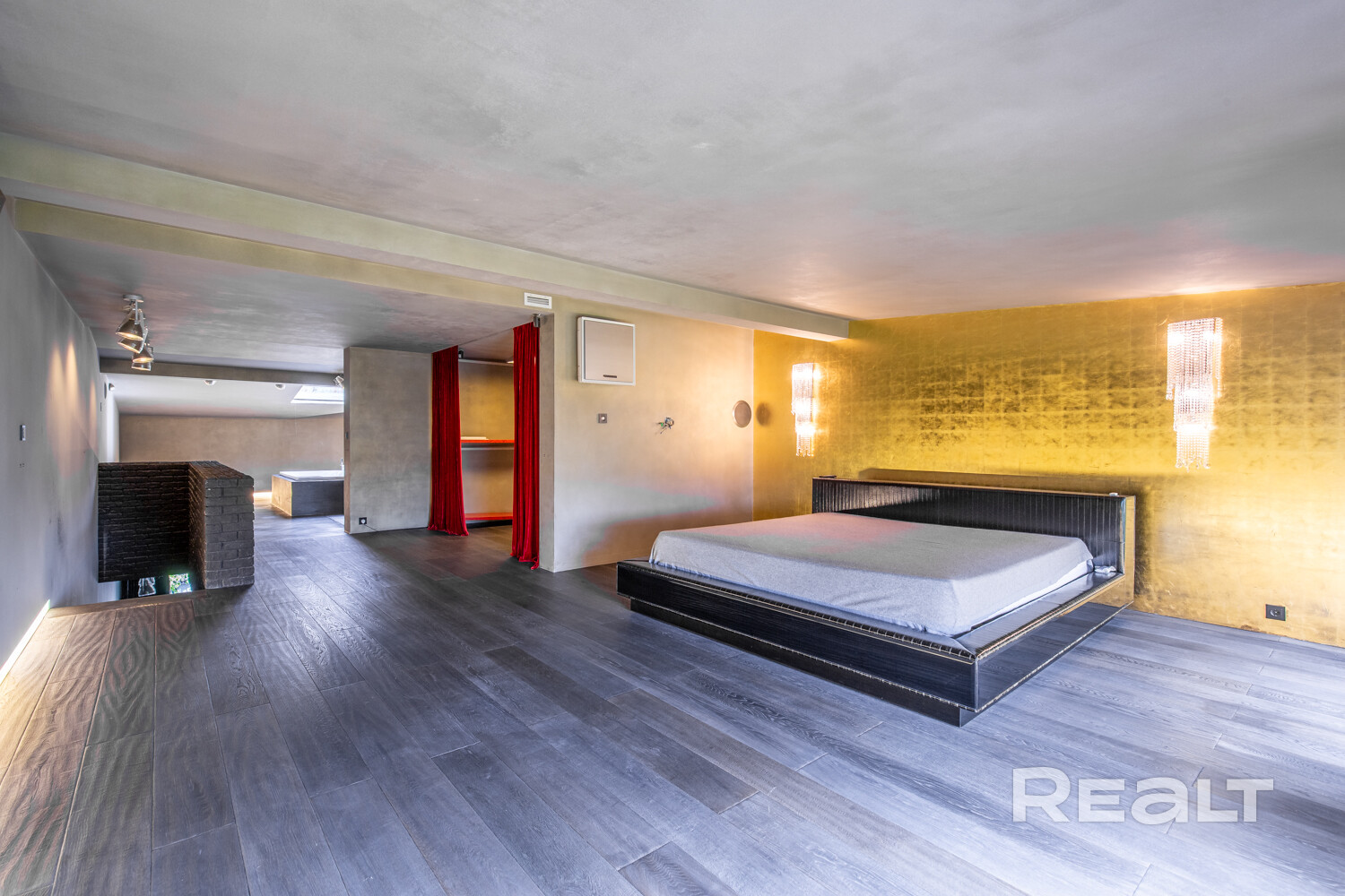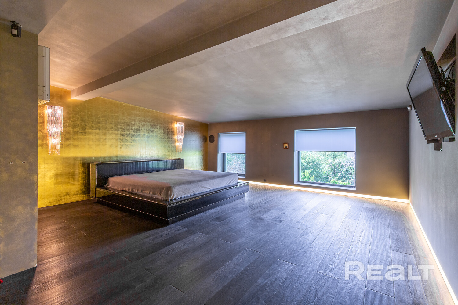 3-ий уровень – приватный. Здесь находится хозяйская спальня, к ней прилегает гардеробная. И размещен хозяйский санузел, в котором установлена душевая кабина. И есть возможность принимать ванну, любуясь звездами из мансардного окна, которое расположено прямо над ванной)