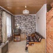 На участке расположен небольшой, но очень комфортный домик — идеальное место для ночевки или укрытия от непогоды, с возможностью круглогодичного проживания. Есть туалет на улице и сарай. Территория окружена деревьями, создавая атмосферу спокойствия и уюта.
