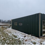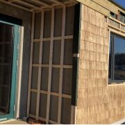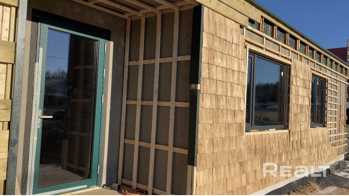 Уникальное сочетание архитектуры с природой. Рядом с минском СТ Триумф 3, закрытый коттеджный поселок, всего 15 минут и вы у метро Уручье. Большое количество панорамного безрамного остекления, зенитные окна в крыше, энергоэффективные и безопасные стеклопакеты из закаленного стекла, входные и террасные двери из дерево- алюминия. Финишная отделка крыши бесшовной мембраной. Фасады стен, фальц и дубовая дранка, освещение на фасадах. На фото этапы зашивки фасадов.