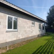 Дом построен на возвышенности по классическому дизайну на армированном фундаменте ленточного типа. Стены – блок газобетон (наружные стены толщиной 300мм). Утепление кровли - минеральная вата. Энергоэффективные окна (4Ci-20Ar-4M1-18Ar-14, КВЕ арм. 2мм, Roto, теплые откосы +подоконники Danke).
