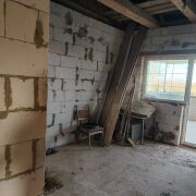 К дому подведен газ, осталось только сделать разводку по дому. В доме имеется совмещенный санузел, выведена вся разводка под сантехнику. В доме все окна ПВХ, входная дверь металлическая, дверь на террасе пвх. По всему дому залита стяжка. Внутри дома остался стройматериал для внутренней отделки. На чердаке мусора нет, стропила крепкие.