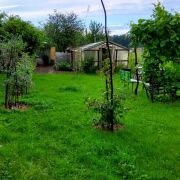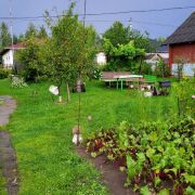 Участок очень аккуратный, ухоженный, с плодоносящими различными деревьями, декоративными кустарниками и цветами. Огорожен. Хороший парник. Есть ворота для заезда и достаточно места для стоянки автомобиля. Гараж. Колодец. На территории участка расположено достаточно различных хозпостроек, глубокий обустроенный бетонный погреб для хранения.