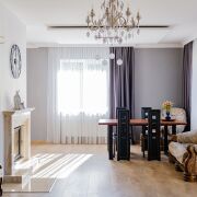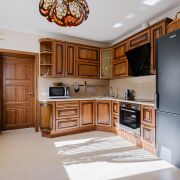 Кухня (на 1 этаже) оснащена полным комплектом встроенной техники импортных производителей. Установлена качественная входная и межкомнатные двери.