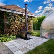Купель с подогревом – рассчитана на размещение для 4 человек. Благодаря встроенной печи – вы можете наслаждаться горячей водой даже в сильный мороз, а после погружения в теплую воду ощущать тонизирующий эффект контраста с прохладным воздухом, что благотворно влияет на общее самочувствие!