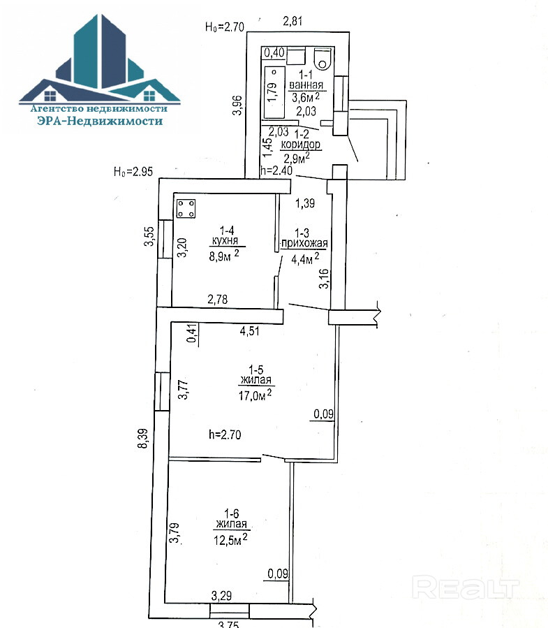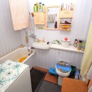 Предлагается квартира в блокированном доме, общей площадью 49,5м2 Она состоит из двух комнат 17м2 и 12,5м2, а также кухни 9м2. Санузел (с ванной) совмещенный. Полы деревянные (очень хорошая плотная доска), в санузле - плитка.